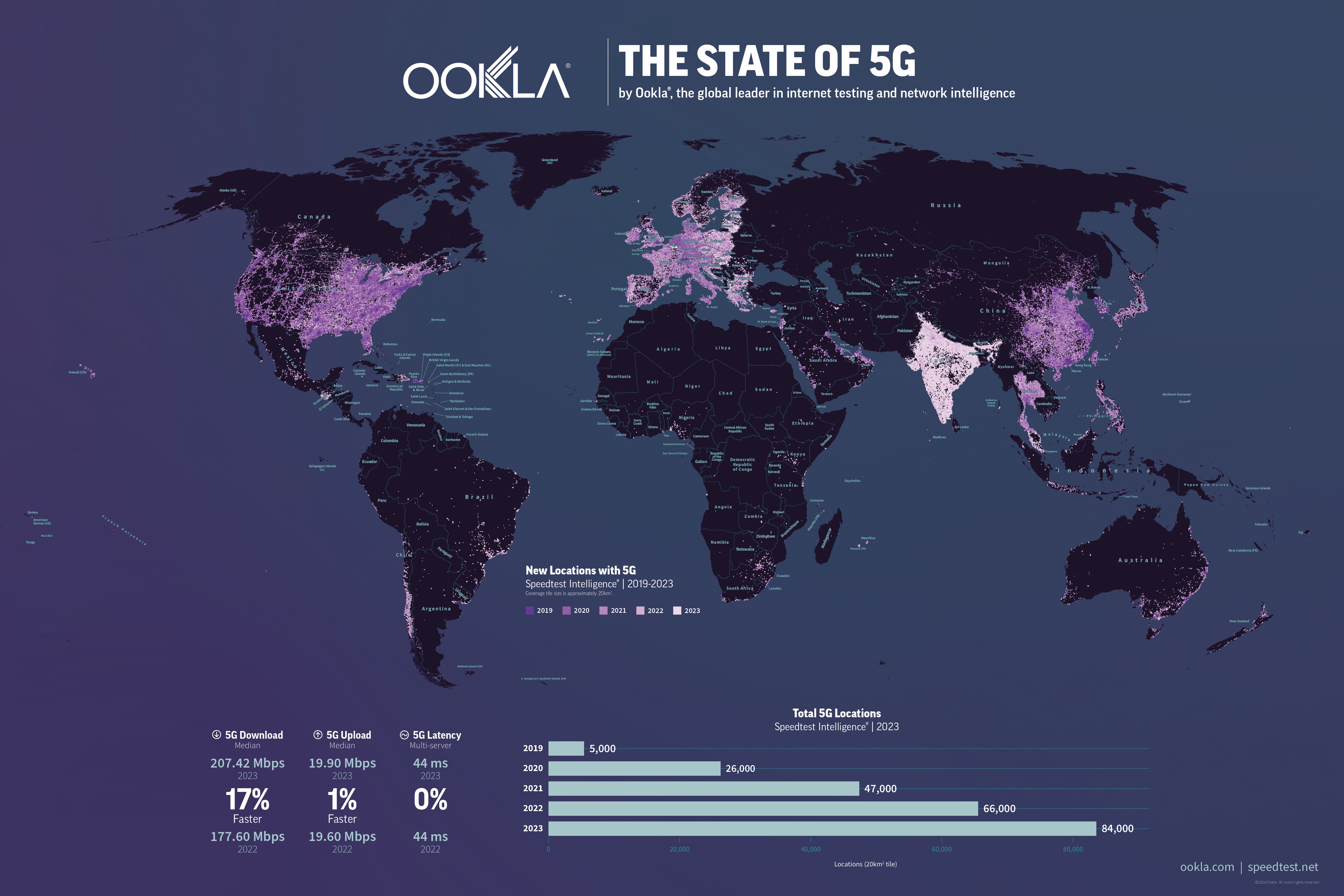 O relatório da Ookla ainda mostrou um aumento de 65% na quantidade de conexões 5G ao redor do mundo, alcançando 1,4 bilhão, em 2023. Em 2022, o número era de 872 milhões.